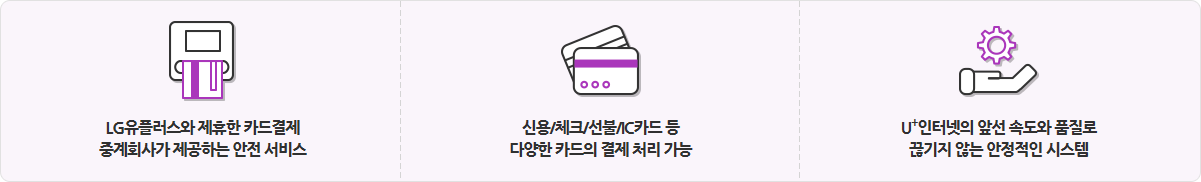 - 신용·체크·선불·IC카드 등 다양한 카드의 결제를 바로 처리할 수 있습니다.